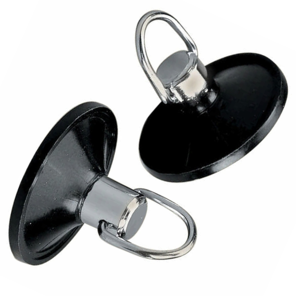 Miniature Magdeburg Hemispheres are an economical substitute for classic physics equipment. These hemispheres are made of two rubber cups with chrome plated steel handles. By placing the cups together and squeezing the air out, students will find it difficult to pull them apart. These miniature hemispheres are perfect for demonstrating the principles of vacuum and air pressure in physics experiments.