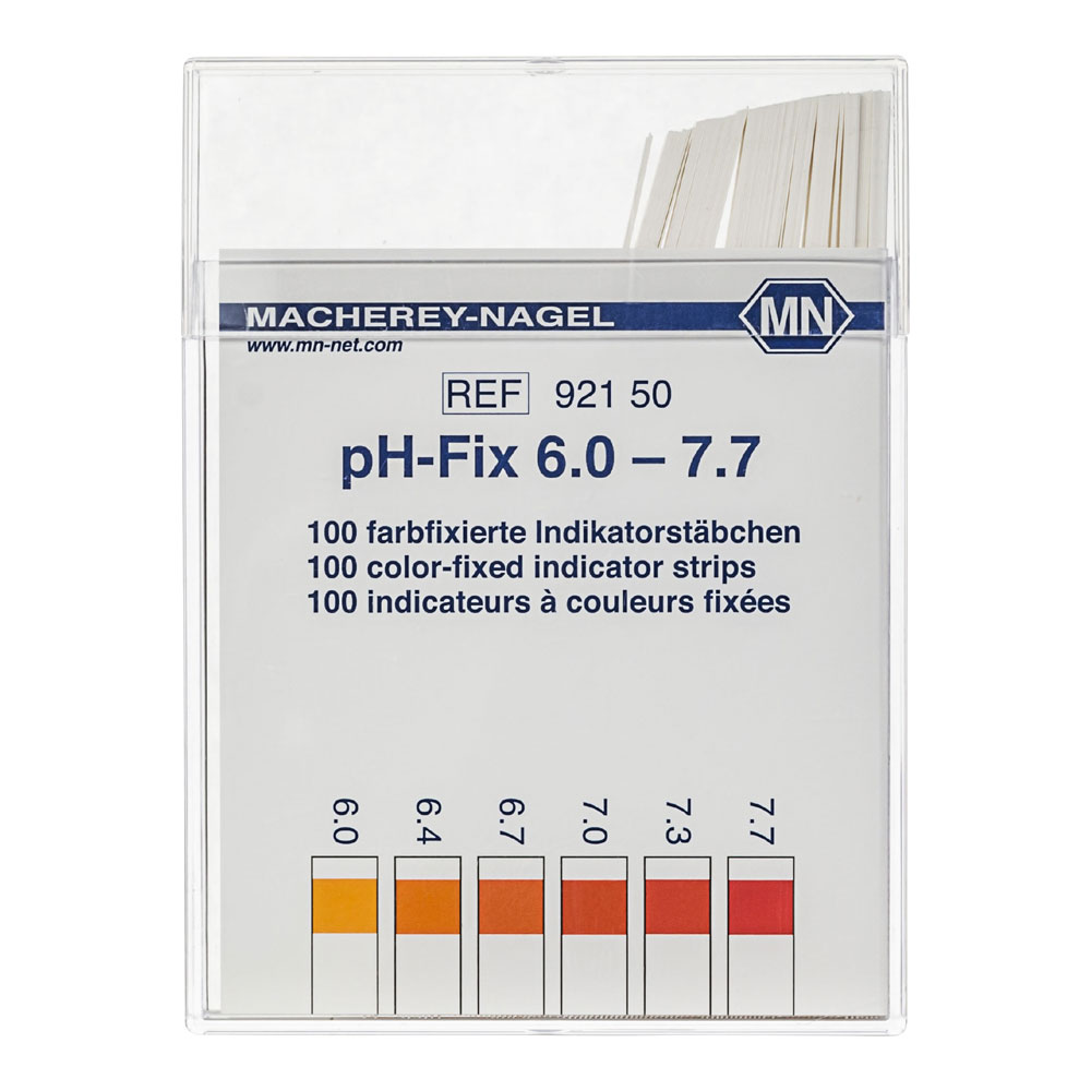 The Ph Indicator Strip, 6.0-7.7 provides reliable pH measurement for solutions within the 6.0‑7.7 range. Each strip is color‑coded for rapid visual interpretation and is supplied in a compact 2.5 × 5.5 cm format. The pack contains 100 paper‑based strips weighing 32 g in total, identified by SKU MN921-677.